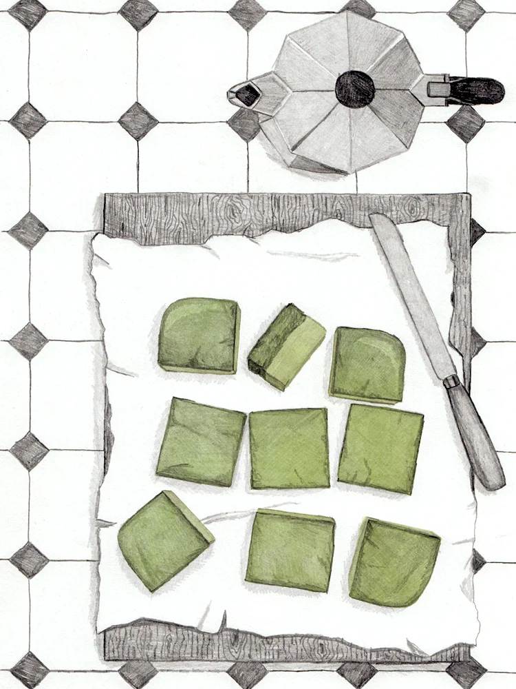 Zum dekorieren: 2 EL Puderzucker + 1 TL Matcha Pulver, zusammen gesiebt